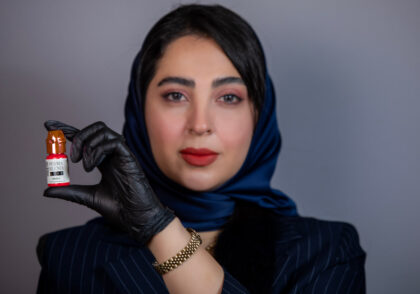 3. اجرای کار با دستگاه میکروپیگمنتیشن: سوزنهای میکرونی و رنگهای مخصوص به آرامی در ناحیه خط مژه کار گذاشته میشوند.